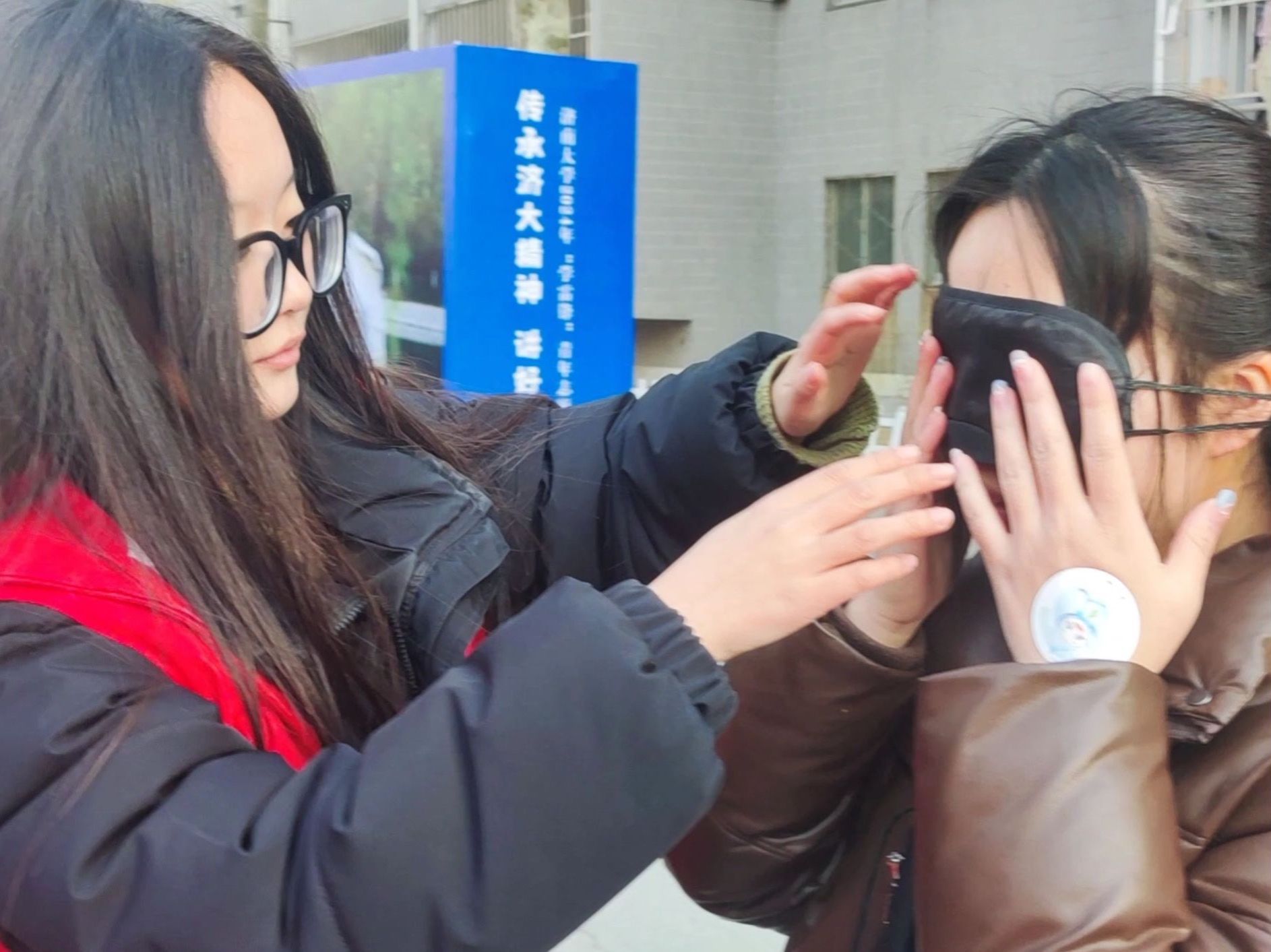 在活动中,特殊教育和公共事业管理(教育管理方向)专业的党员和入党积极分子发挥专业技能优势,在现场开展盲杖体验、手语基础教学和心理投射量表测验等特色活动。各位志愿者向现场的体验者详细讲解盲杖的用法,辅助体验者利用盲杖探索行走;向参与者示范基本手语,了解参与者的兴趣现场教学;根据测试者心理投射量表结果,帮助测试者进行自我剖析。