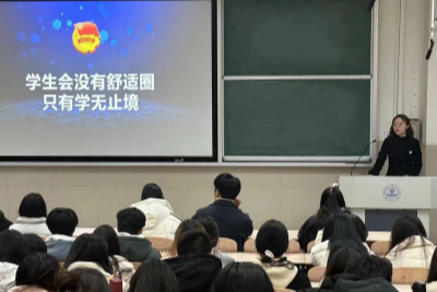 首先,刘晓彤老师以“学生会没有舒适圈,只有学无止境”为主题,对2023年度团学工作进行了回顾与总结,同时对新学期学生会工作提出了3点要求:一是要严把政治关、学业关、能力关、作风关和群众关,做到突出政治标准、提高学业要求、强化服务意识、拓宽参与渠道;二是要以决战的心态投身于学生会的工作,凝聚团结奋斗的力量,实现自己的价值。三是要把高质量发展作为学生会发展的生命线,责任到位,实干善为,行稳致远。