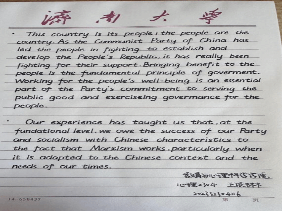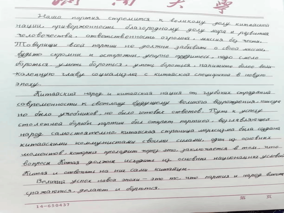 本次活动中,学生们紧扣传达二十大精神的主题,以独特的视角和丰富的创意创作了多样的作品,涵盖多种语言。通过硬笔书法、软笔书法、粉笔字等多种书写方式,用多种语言书写二十大金句,学习宣传党的二十大精神,让学生在挥毫泼墨中共抒爱国情。不仅展示出参赛者扎实的外文功底和艺术素养,也让党的二十大精神在异国文字的演绎下散发别样魅力。