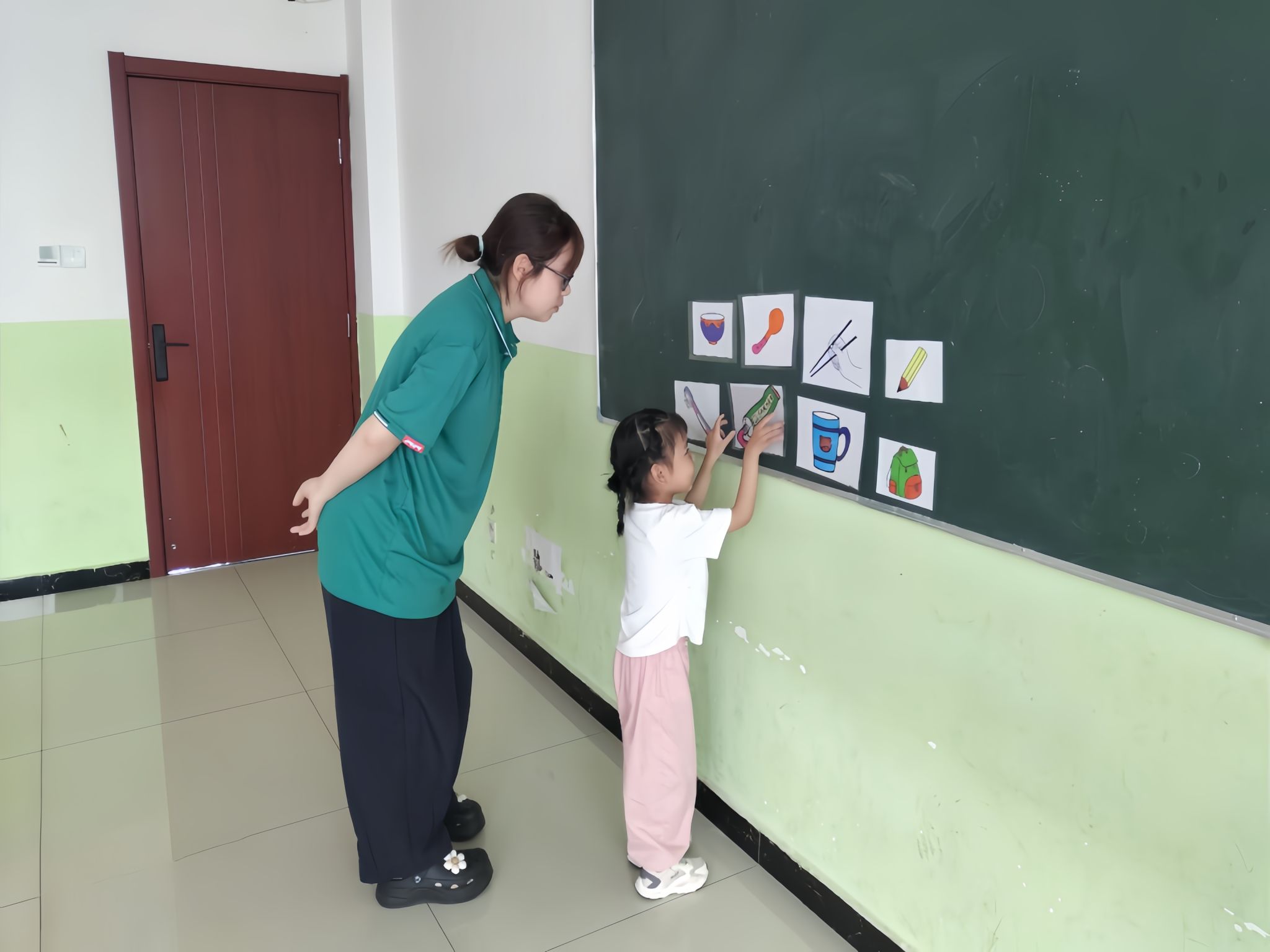 座谈会结束后,实践团成员在机构老师的安排下,在各个班级与特殊儿童进行课程互动。课程内容多种多样,包括一对一辅导特殊儿童进行识字训练与搭积木练习,图文并茂教导孩子们进行识物训练,在感统教室辅助孩子们进行运动训练,带领孩子们在音乐声中进行运动等等。在此次实践过程中,成员们纷纷表示,自己进一步了解到当前融合教育发展的状况,并促进了个人专业技能与实践的融合,自身的专业技能得到了磨练。