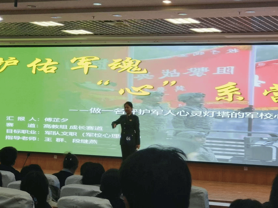 傅芷夕同学以“护佑军魂,‘心’系营帐”为题,结合心理学专业特色,表达了自己对于投身国防安全事业的决心和信心,体现了一名新时代青年应有的担当精神与社会责任感,获得了现场评委的一致好评,最终以得分第一的成绩获得成长赛道一等奖。