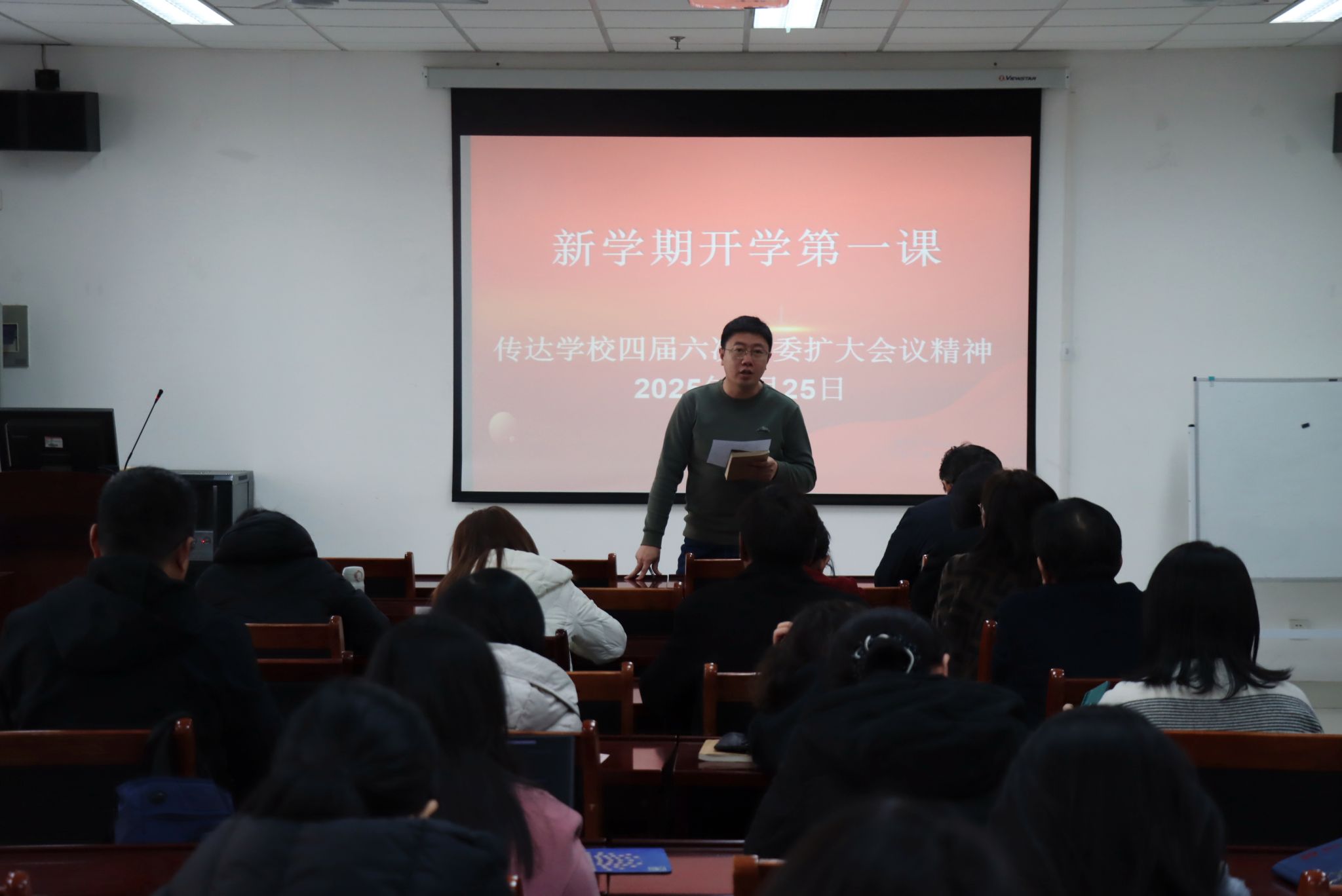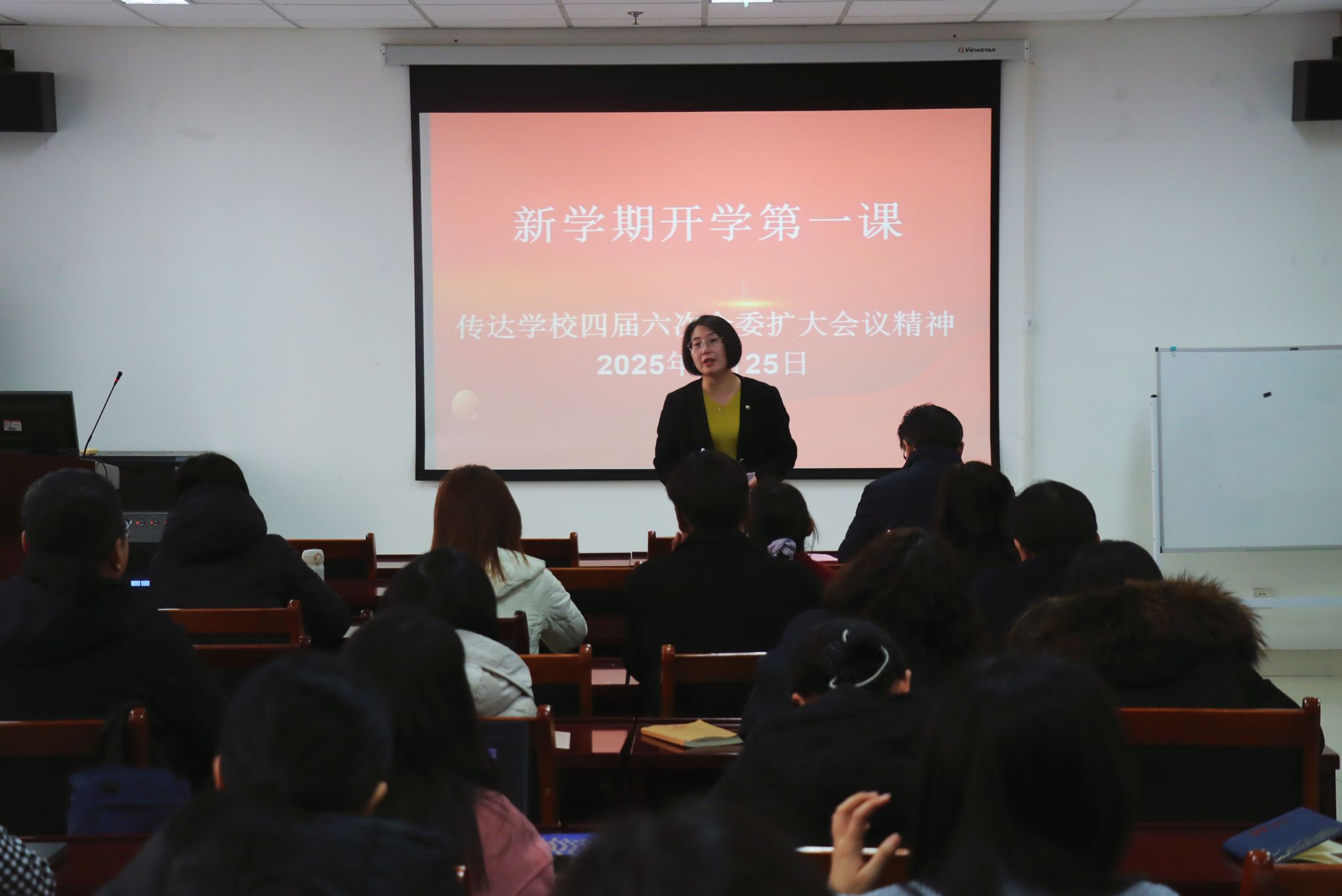 四届六次全委扩大会议精神。学院党委书记季竹君主持会议并讲话,全体教职工参加会议。
