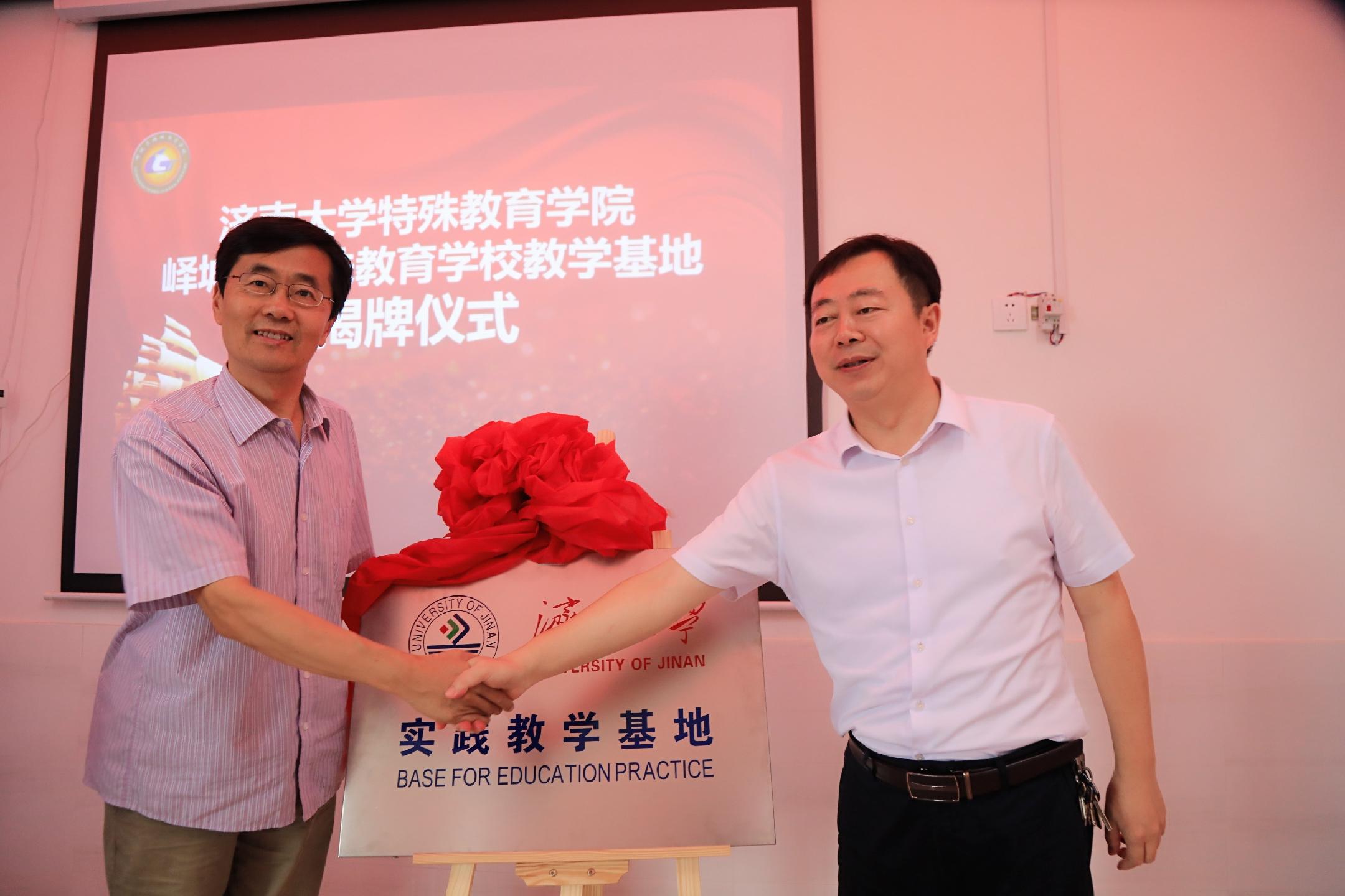 教学实践基地”挂牌仪式在峄城区特教学校举行。枣庄市峄城区教育与体育局局长张勇、峄城区特教学校校长褚夫伟及教师代表,学院党委书记牛瑞斌、山东省特殊教育研究中心副主任胡金萍出席了仪式。仪式由峄城区特教学校党委书记张伟主持。