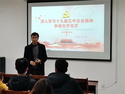 在特教大楼开展学习贯彻党的十九届五中全会精神主题党课,本次党课以“深入学习党的十九届五中全会精神,争做优秀党员”为主题,由学院党委书记牛瑞斌主讲,全体党员、预备党员和发展对象参加。