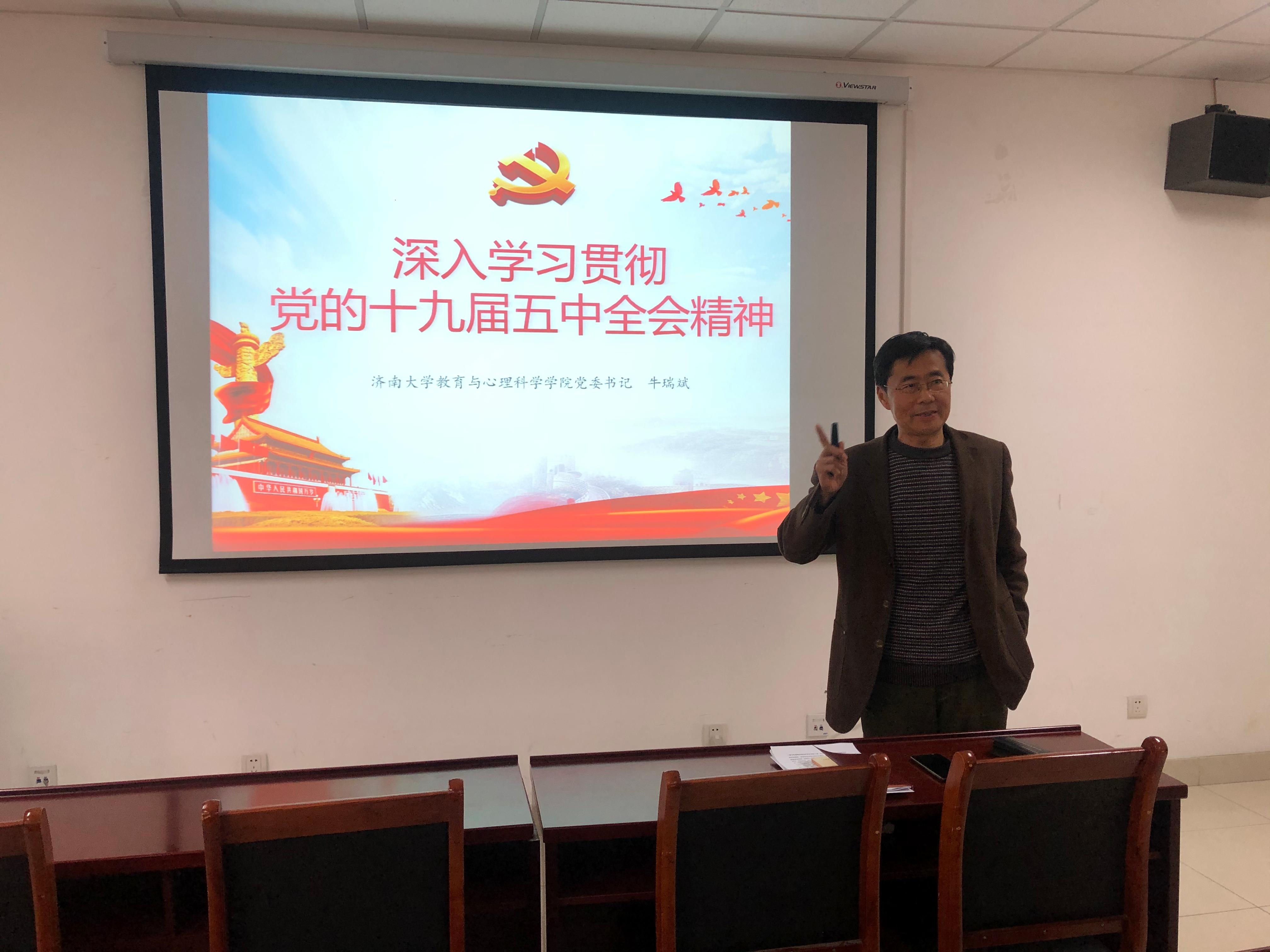 组织全体教职工集体学习,学院党委书记牛瑞斌进行了深入学习贯彻党的十九届五中全会精神专题党课。