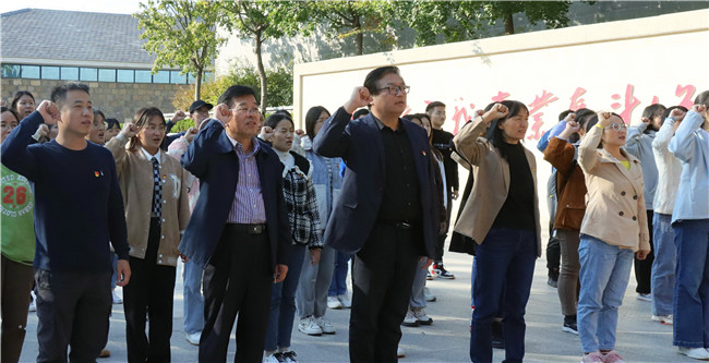 学生党支部40余人在学院党委书记季竹君带领下赴大峰山党性教育基地开展主题党日活动。