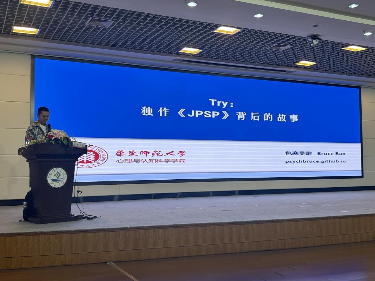 为拓宽研究生的学术视野,增强学术素养,特别邀请了华东师范大学心理与认知科学学院的包寒吴霜博士作题为“独作《JPSP》背后的故事”的学术报告。此次报告会由学院副院长杨鹏主持,学院部分教师以及2023级、2024级研究生共同参加了会议。
