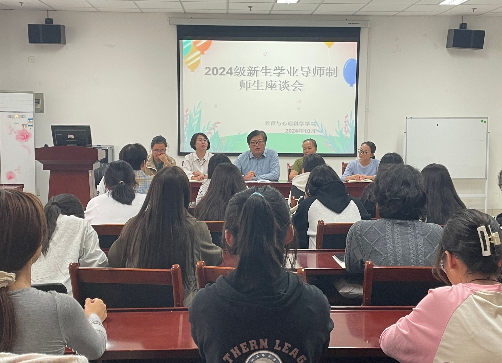 2024级新生学业导师制师生座谈会在学院会议室召开。学院领导、各系系主任、学办主任及2024级各班新生代表参加会议。