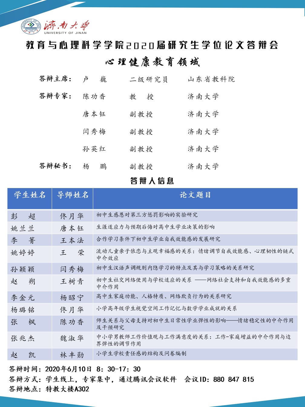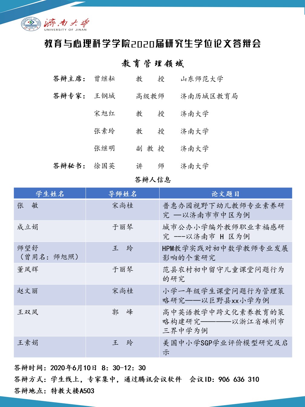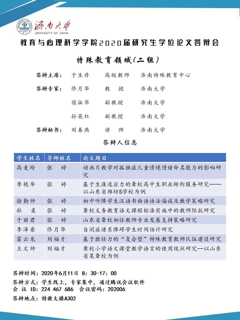 h动漫 2020届研究生答辩安排