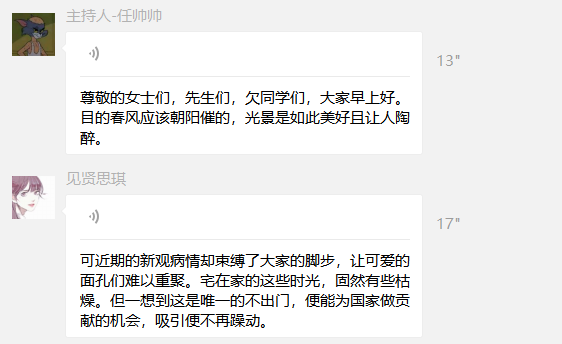 3月29日上午九时,志愿者们用线上语音报幕的方式拉开了线上表演的序幕,社区居民跃跃欲试,能歌善舞,小区居民张瑞萍表演舞蹈《梅花泪》为我们带来了春的气息;秋竹等七名志愿者的诗朗诵《献给志愿者的诗》,歌颂了一线工作人员们无声的大爱;社区居民刘英则向大家展示了原创的艺术摄影作品,用相机记录下身边点滴,定格美好回忆;社区居民张瑞红表演的舞韵瑜伽《青城山下白素贞》翩如兰苕翠,婉如游龙举,也令大家交口称赞。当真是“看今朝舞低杨柳楼心月,歌尽桃花扇底风”,一度将线上表演推到了高潮。志愿者们也各显神通,将当代大学生积极进取的精神风貌以及多姿多彩的生活表现的淋漓尽致,大家将表演与对抗疫期间工作者和志愿者的感激结合起来,表达了心中深深的敬佩之情。其中由教心学院学子陆彤演唱的歌曲《房间》,高欣宇带来的《平凡天使》以及李昊霖精心制作的配乐视频《听我说谢谢你》等节目都收到了社区居民的一致好评。演出临近尾声,教心学院文艺部的同学还献上了精心准备的曲目——《天使的身影》,以视频的方式教社区居民们演唱。最后,鲁贤社区的马振书记也通过文字形式表达他的欣喜之情“希望我们同舟共济,共同打赢这场防疫战,下一步,社区将联合h动漫