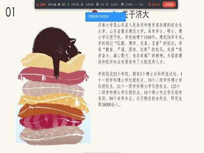 本次采用线上宣讲形式,同学们进入宣讲会议,首先由主持人介绍宣讲主题与几位专业介绍人。伴随着济大校歌,主持人首先采用ppt方式介绍h动漫