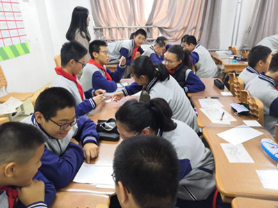 个体面询即通过心理健康诊断测验(MHT)筛选出分数较高的学生进行面谈。刘洋等16名同学对这些具有一定心理问题的学生展开了近50分钟的心理辅导,鼓励他们敞开心扉,直面困难,帮助他们疏导不良情绪,保持乐观、开朗的心境。团体辅导中,蒋丹迪、赖一菲等五名同学围绕“获取友谊”设计了精巧的课堂游戏,对初一学生开展辅导,帮助他们在活动中掌握人际交往的技巧,为以后构建良好人际关系奠定基础;“逆反心理”为主题的团体辅导由吕颖琪、解小苇等四名同学为初二年级的学生展开,在他们的精心准备下,专业的心理学知识被转化为通俗易懂的课程内容,学生们听讲认真,积极参与课堂活动并分享自己的想法。