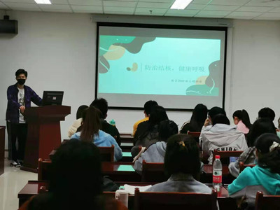 心动泉城心理服务中心,心泉青年志愿者协会和院心理协会的志愿者们通过微博、公众号对“防治结核,健康呼吸”进行宣传,组织宣讲志愿者观看相关视频进行学习,为此次宣讲活动做了充足的准备。宣讲过程中,志愿者通过PPT向同学们介绍了结核病的常见症状,例如:低烧、疲乏、消瘦等,强调了在通风不良的集体生活中的学生是结核病的易感人群。此外志愿者们以播放有关防治结核的公益广告的形式,让同学们更加直观的了解结核病的传播过程及传播方式。活动现场气氛活跃,志愿者适时与同学们进行互动,使同学们更好地认识结核病的危害并加以防范。最后,志愿者提出关于防治结核的几点建议,即“要做好人群密集场所通风和环境卫生、保持良好的作息习惯、加强体育锻炼、养成良好的卫生习惯”等相关内容。同时志愿者也向同学们提出了“如发现与结核病人有密切接触,需及时配合专业机构进行检查”的要求。