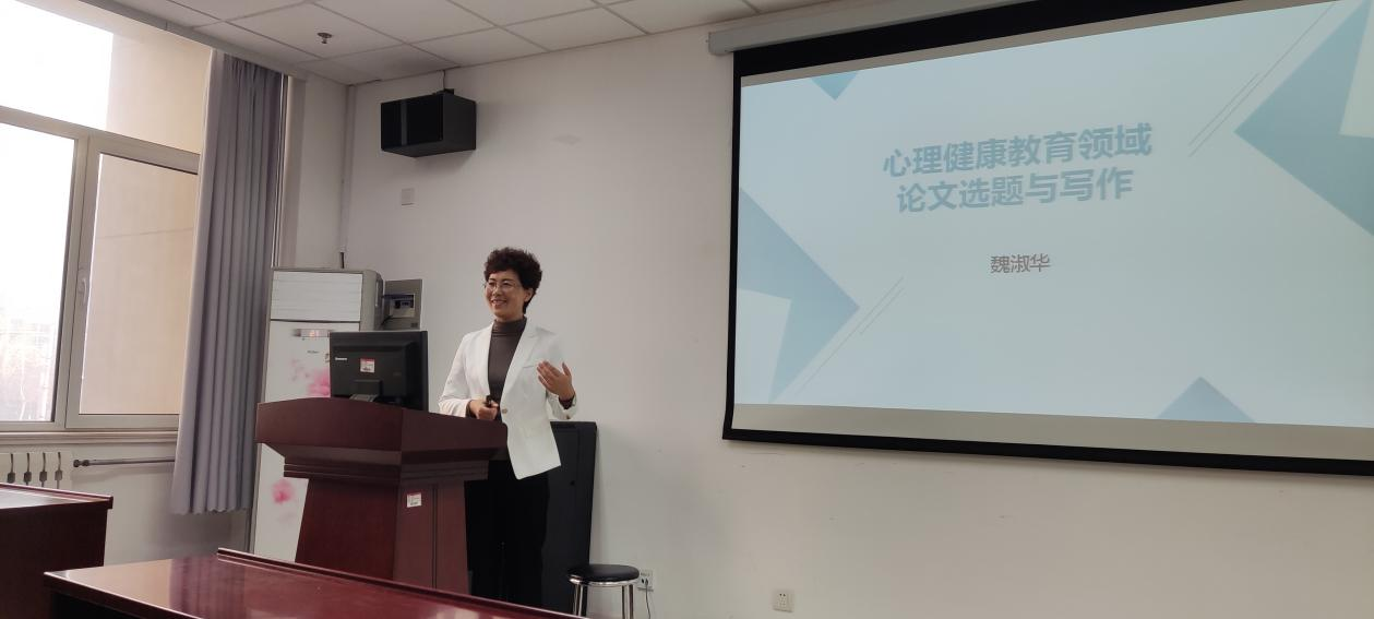 魏淑华教授于特教大楼A302室开展了“心理健康教育领域论文选题与写作”主题讲座,郑玉玮副教授主持了本次讲座,20级、21级部分研究生参加了本次讲座。