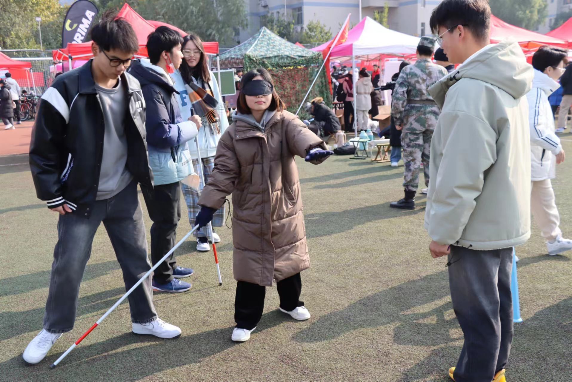 活动主要以引导参与同学使用盲杖,体验作为盲人的行动方式与学习简单手语为主。活动中,h动漫